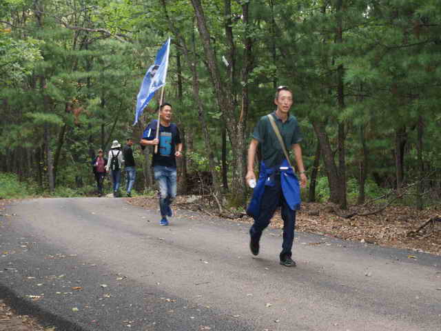 第一項(xiàng)趣味活動。孫鑫高舉集團(tuán)旗幟走在最前方,其他員工隨他而上,你追我趕,爭當(dāng)爬山前十名。雖然道路平整,但坡度較大,欣賞著兩側(cè)筆直的樹木,呼吸著新鮮空氣,看著身邊的同事的爬山速度,輕松狀態(tài),更能深刻體會本次活動的意義。相關(guān)工作組員隨時(shí)溝通,保證每一位同事都不掉隊(duì),大家相互加油鼓勁。歷經(jīng)50分鐘,所有員工都成功登頂。