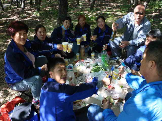 發(fā)獎(jiǎng)過后,開始到了最開心的午餐時(shí)刻。每個(gè)組到食物保管員處領(lǐng)取本組食物,尋找喜歡的野餐地點(diǎn)開始就餐,食堂準(zhǔn)備的午餐十分豐盛且分量十足,爬山、拔河消耗的體力得到了很好的補(bǔ)充。高興的吃著,欣賞著林間美景,時(shí)不時(shí)傳出一陣歡呼,同事們的心情無比愉悅和放松。